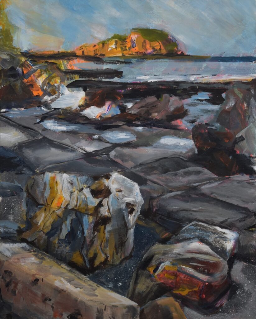 This is the place in Robin’s imagination as she conjures light and colour from the landforms. The power of nature takes the forefront here. You can almost see the Island eroding away.